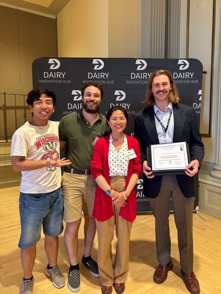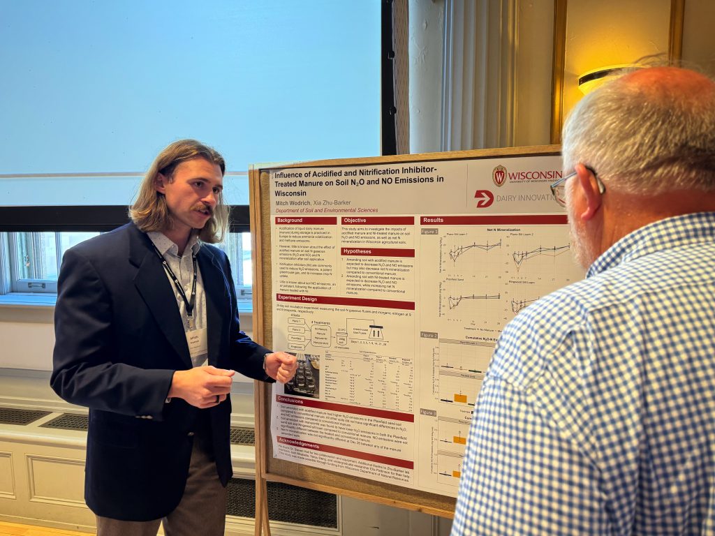 We are proud to share that Josh and Mitch presented their exciting research at the Dairy Symposium at our Memorial Union! Mitch won second place in the poster competition for his poster titled From slurry to soil: investigating the effects of acidified manure and dicyandiamide-treated