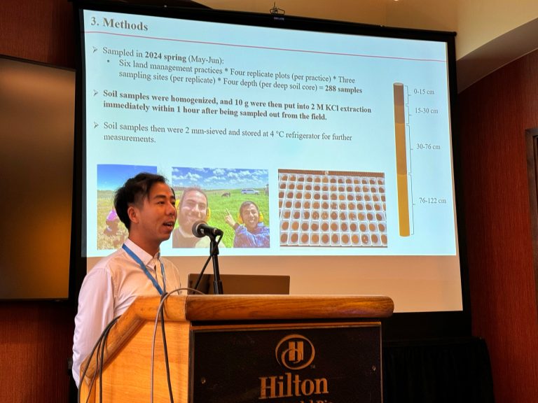 Yanyu won 2nd place in graduate student competitions for the Nutrients and Environmental Quality community during the 2024 ASA, CSSA, SSSA International Annual Meeting in San Antonio. His presentation was titled Crossroad of Nitrate: How Deep Can Climate-Smart Practices Influence Denitrification in Soils? Well-done, Yanyu!