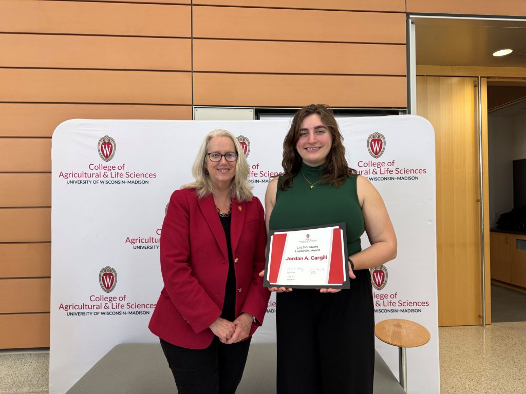 MS student Jordan Cargill recently won the College of Agricultural and Life Sciences Graduate Student Leadership Award. Jordan is an active member of the graduate student community, has served on the Soil and Environmental Sciences Graduate Student Council, and is a leader of the College of Ag Writing Science (CAWS) group. It’s great to see her contributions recognized.