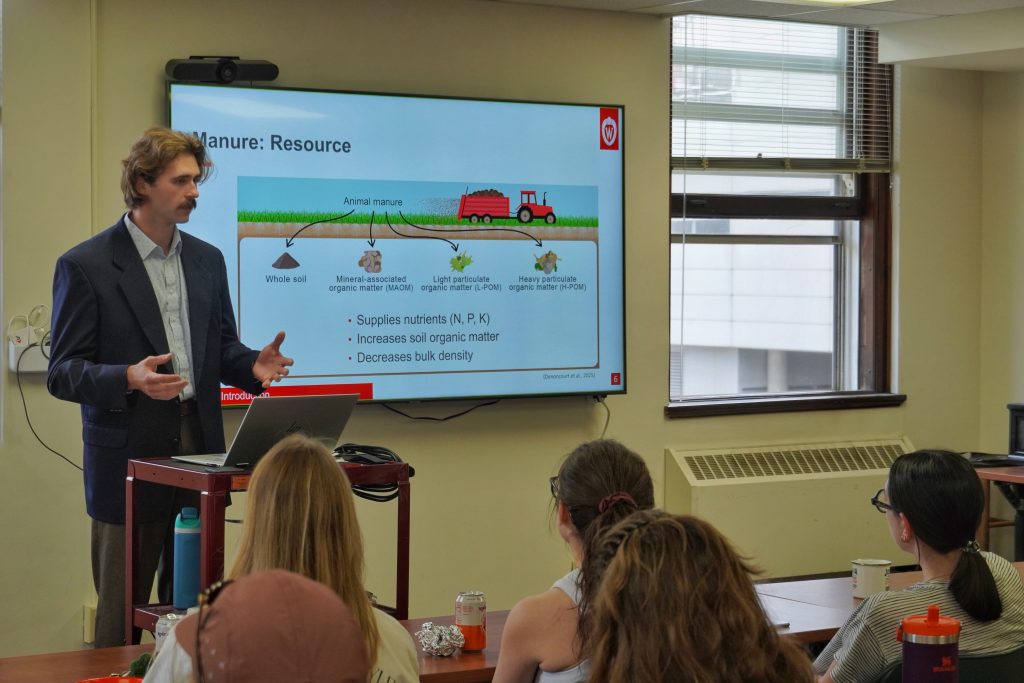 We are proud to share that Josh and Mitch presented their exciting research at the Dairy Symposium at our Memorial Union! Mitch won second place in the poster competition for his poster titled From slurry to soil: investigating the effects of acidified manure and dicyandiamide-treated